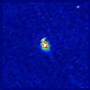 Surface Brightness Image![]() img_m51_b3_20 This image represents the actual IRAS infrared sky as processed by the MCM algorithm. Intensity is in units of mega-Janskys per steradian. Coverage Image![]() cvg_m51_b3 The coverage image gives the sum of the weighted detector response at each image pixel over all detector samples. The actual number of detectors contributing to a particular pixel is roughly twice the value of that pixel in the coverage image. Examination of the coverage image can indicate non-uniformities in detector coverage. Correction Factor Variance Image![]() cfv_m51_b3_20 The correction factor variance image gives the statistical variance about the mean correction factor (computed for each detector) for that pixel. The MCM algorithm iteratively approximates the real sky by correcting the intensity in each pixel so that the simulated scan data are maximally similar to the actual scan data. If all the detectors agreed exactly on what the flux of a given pixel should be, all the correction factors would be one and the correction factor variance at that pixel would be zero. For a typical default-processed source with good signal to noise, the correction factor variances at iteration 20 should be between 0.001 and 0.01. Areas with relatively large correction factor variance either indicates the presence of data which do not agree with the majority of the scans (a "bad" scan, for example, or 3rd HCON calibration differences) or noisy or saturated regions. Alternatively, the source may not yet be as resolved as is possible with the MCM. A high correction factor variance may indicate the field would benefit from further iteration. Photometric Noise Image![]() phn_m51_b3_20 The photometric noise image indicates the internal photometric error of the detector samples resulting from the averaging of those that overlap, and is essentially the standard deviation of contributions to each pixel. It does not include absolute errors such as calibration errors. These images can thus be used to show the relative noise across an image, but not the absolute level of the photometric noise.
