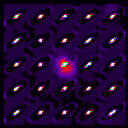 The beam sample images are a fairly sophisticated tool for estimating the achieved resolution in the HIRES images. The beam sample images make use of the simulation capability of HIRES, which allows the generation of modeled detector scans for an arbitrary input image. For the beam sample images, the input image is a pattern of spikes of user-specified integrated flux density planted on top of either a smoothed version of the 20-iteration HIRES image of the input field or a flat background. By default, either 25 spikes in a 5 by 5 grid (1 degree square field) or 81 spikes in a 9 by 9 grid (2 degree square field) with a height of 10 Jy are used. You may specify the positions and/or height of the spikes and doing so will provide optimal results. An option to plant spikes where a point source filter detects point-like structure is also available. One spike plus background model image is generated per band. Once the spike plus background model input image has been generated, simulated unenhanced scan data for it are generated. These data are then passed through HIRES as if they were real IRAS scans, and the resulting images are output, once for each surface brightness image, as the beam sample images. A two-dimensional gaussian fit is made to each spike location and the results reported in the beam width report. The resolution of the spikes at a given iteration should be a good indication of the resolution of a real point source of that flux at that location in the HIRES image. However, there are many reasons why some variation might occur and the beam sample images should be interpreted carefully. Detector Track Image![]() det_m51_b3 This is a image which indicates which detector's center hit each pixel. If the center of a detector "footprint" (two dimensional modeled response function) hit a pixel, its ID is recorded in that pixel. If more than one detector hits a given pixel, the last to cross is kept. If no detector center hit the pixel, the value zero is kept. Return to HIRES Instructions . |