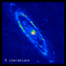 The output comes in a tar file called "results.tar". A results page will come up at the end of processing, telling you how to retrieve it. The FITS images are in the sub-directory "img". The final images are the four 20-iteration files, one per IRAS band, labeled "img_*_20.fits".