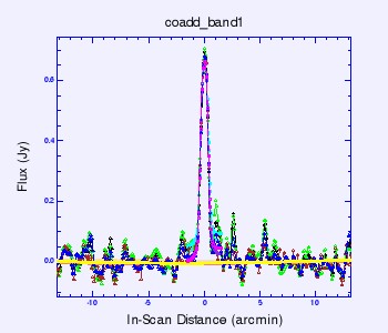 srcfit_coadd_plot | Plot of all coadd scans, fits and background fits, for IRAS Band 1. |